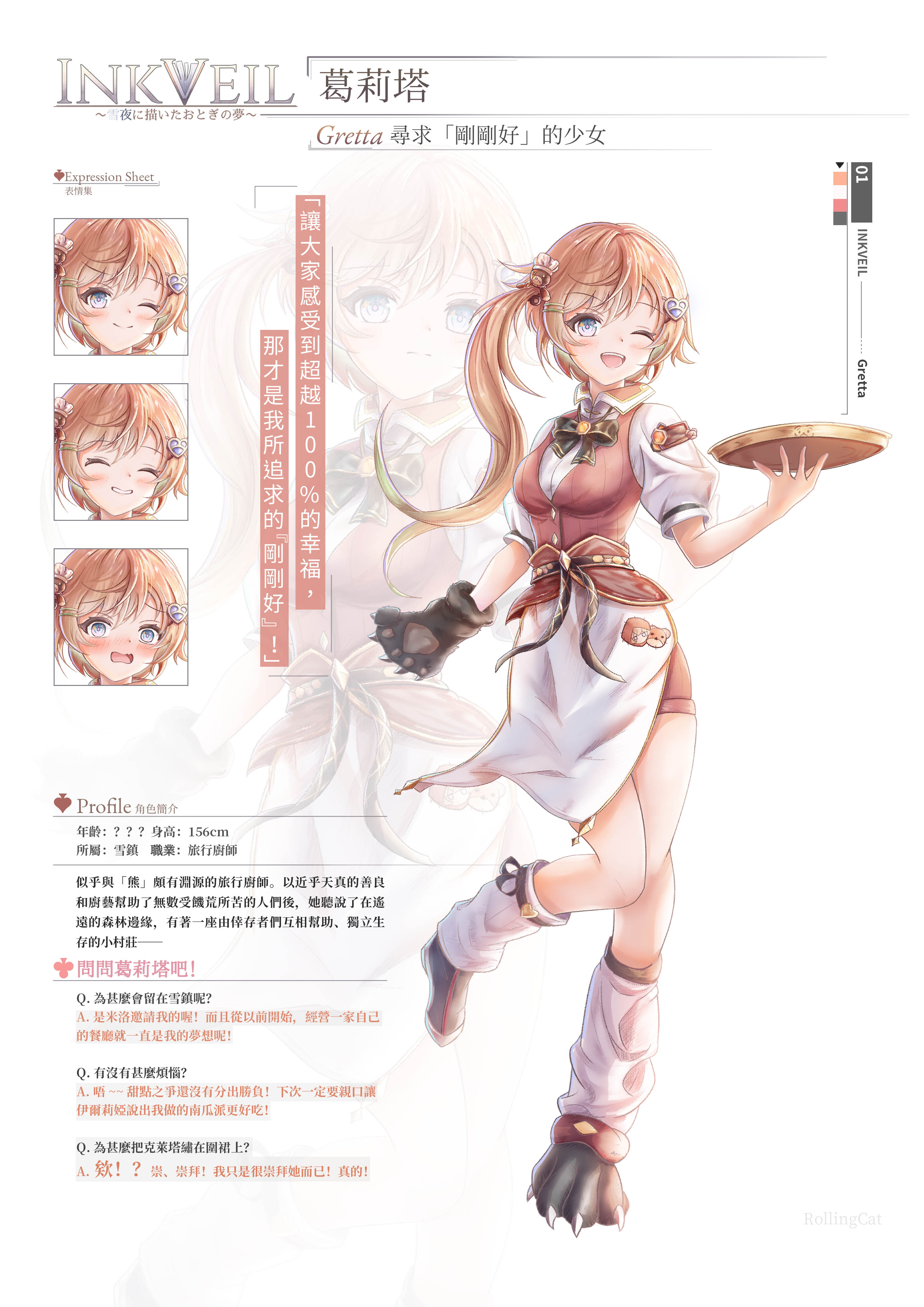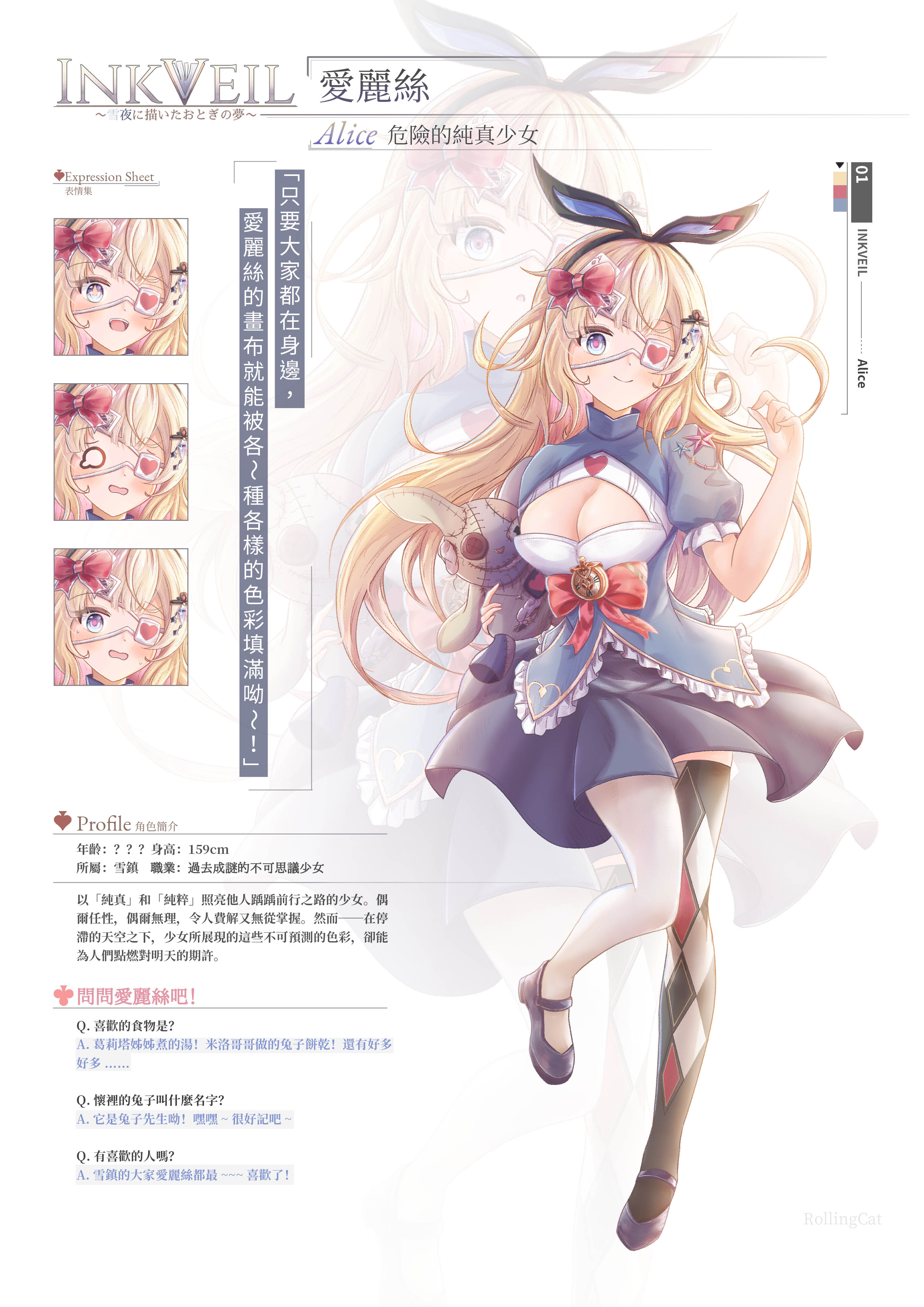 角色設計(文字描述、排版、服裝設計、立繪、表情集)等。
