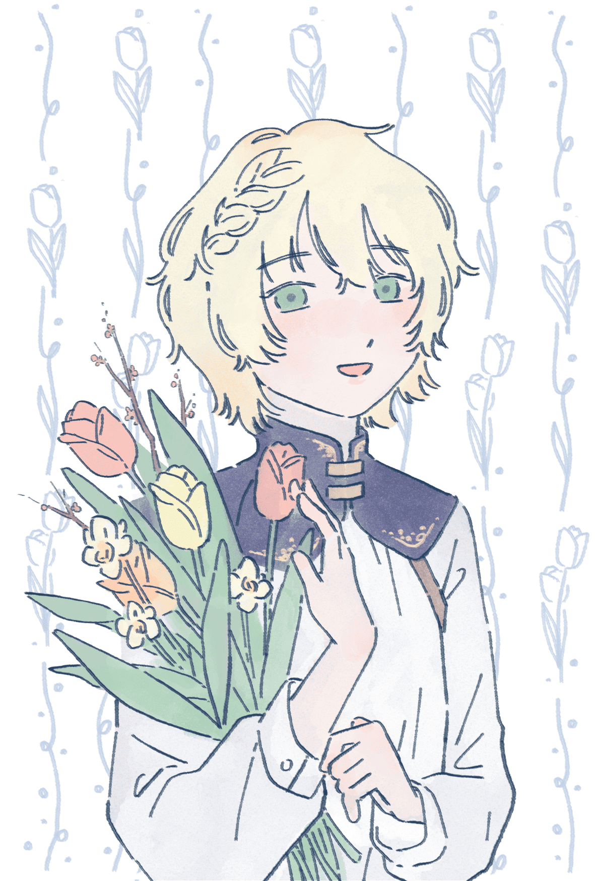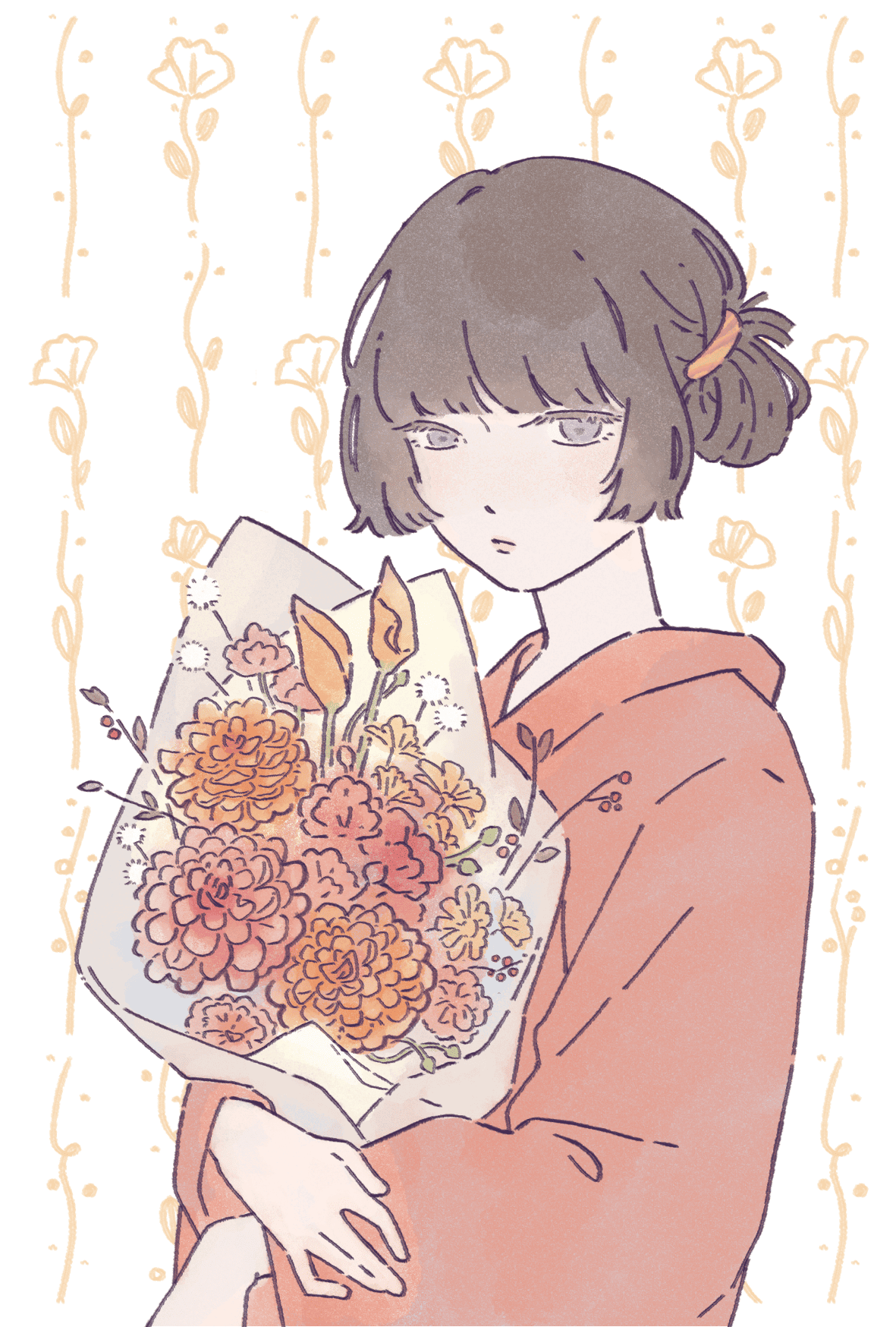 半身人物 +  角色印象花束設計  +  簡單裝飾背景