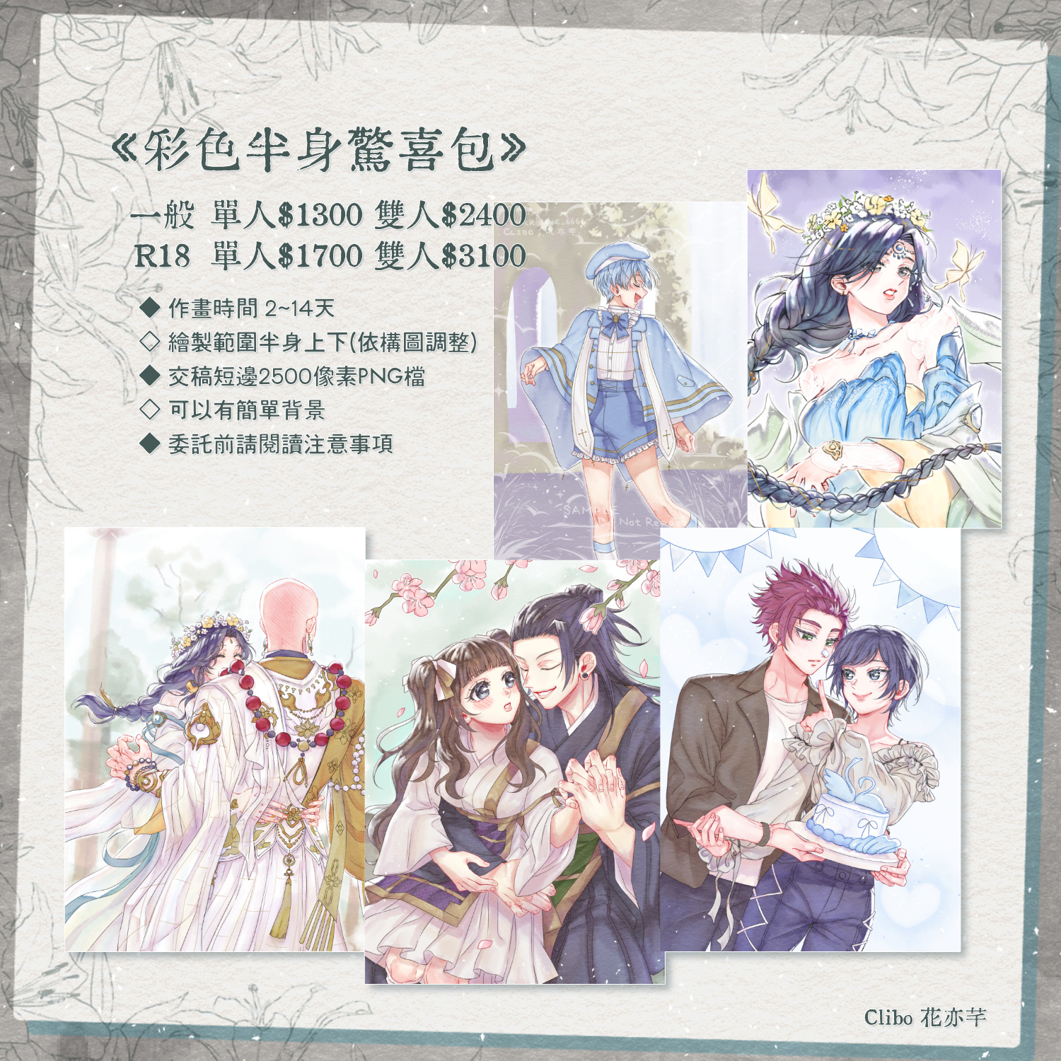 2~14天作畫時間 以排單表為準
