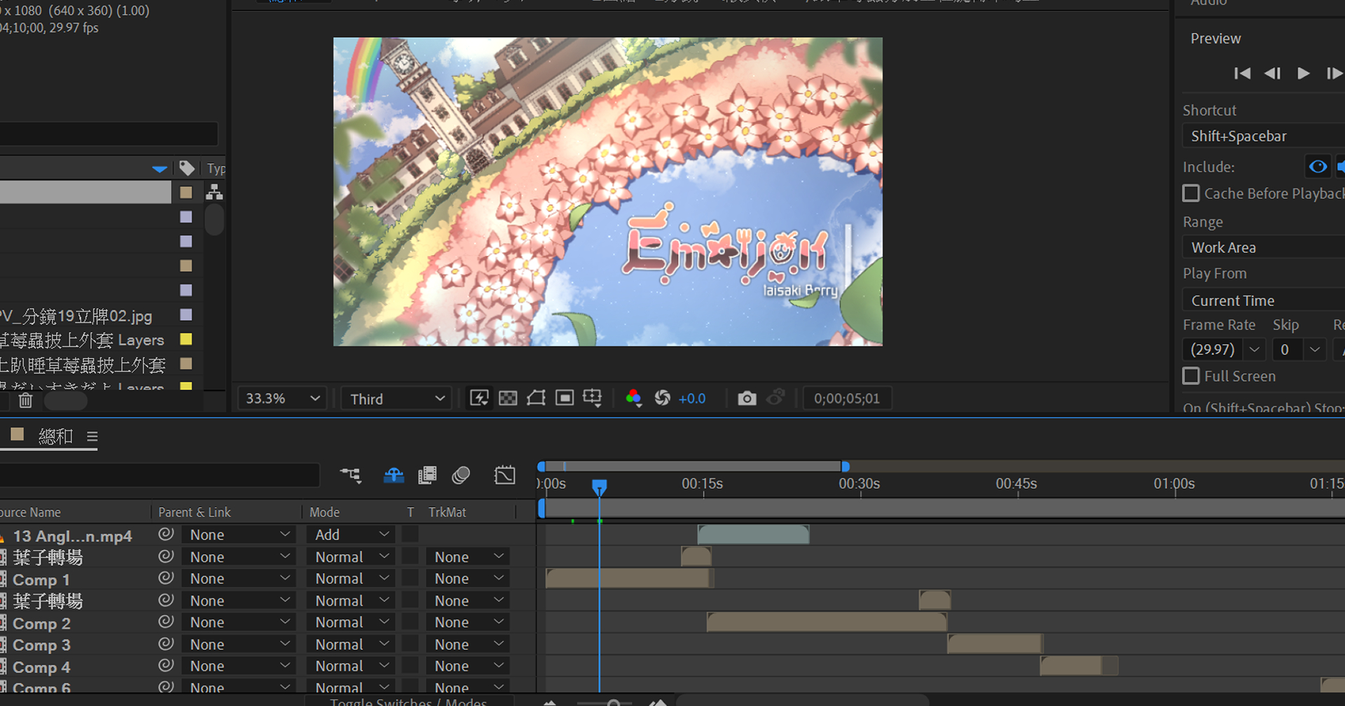 包含6個場景分鏡、5個人物循環動畫(2個服裝差分)、文字特效