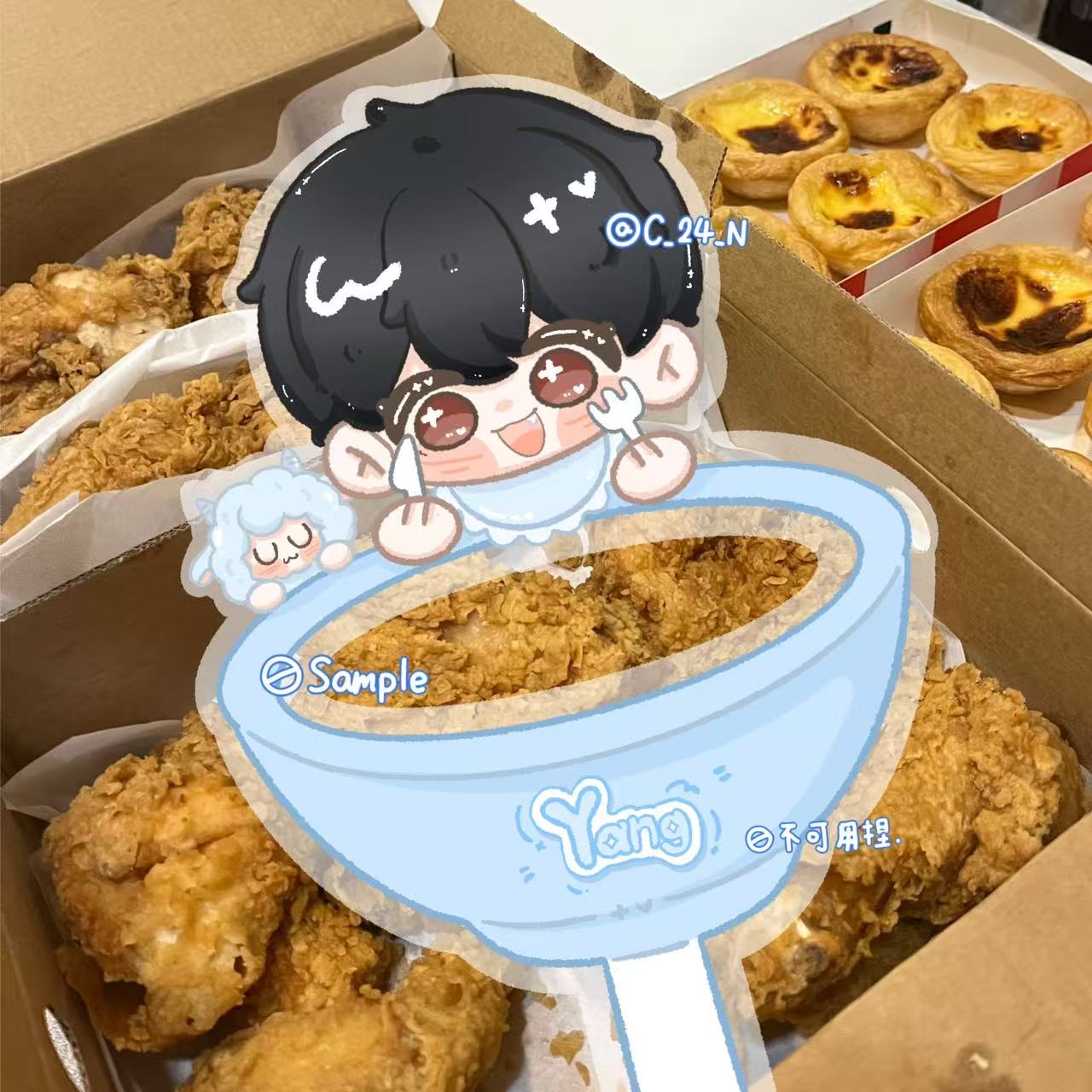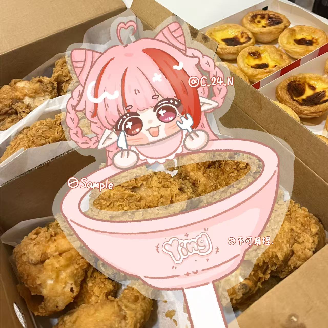 接稿後會先進行討論 : 設定、碗上文字、圍兜兜顏色、背景可帶圖幫您擺放上去~