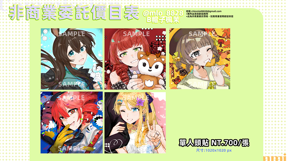 |繪製完會壓浮水印公開,如是不公開稿件請提前告知。