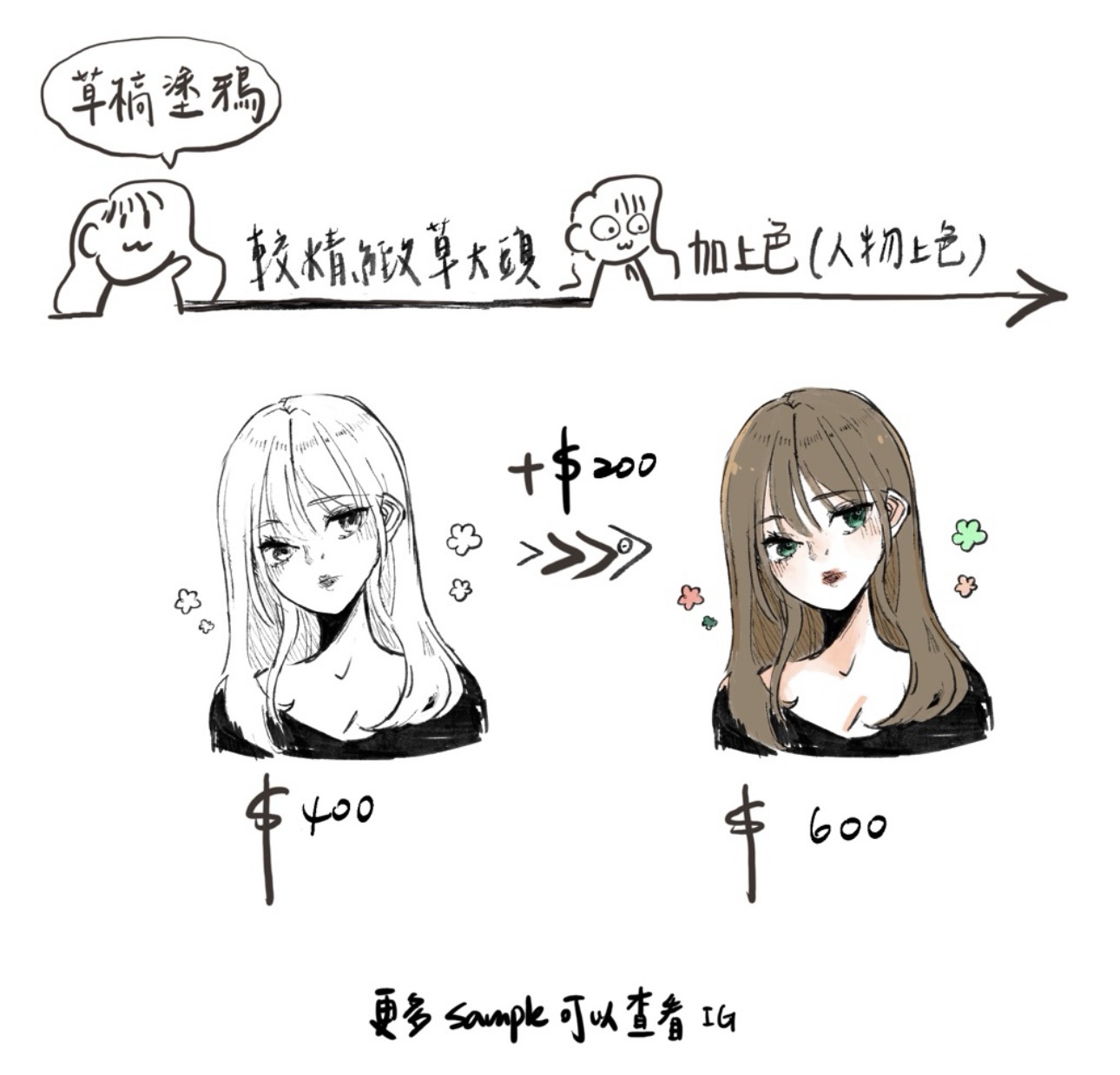※若設定複雜、真人似顏繪或特定姿勢表情,將視情況追加估價。
