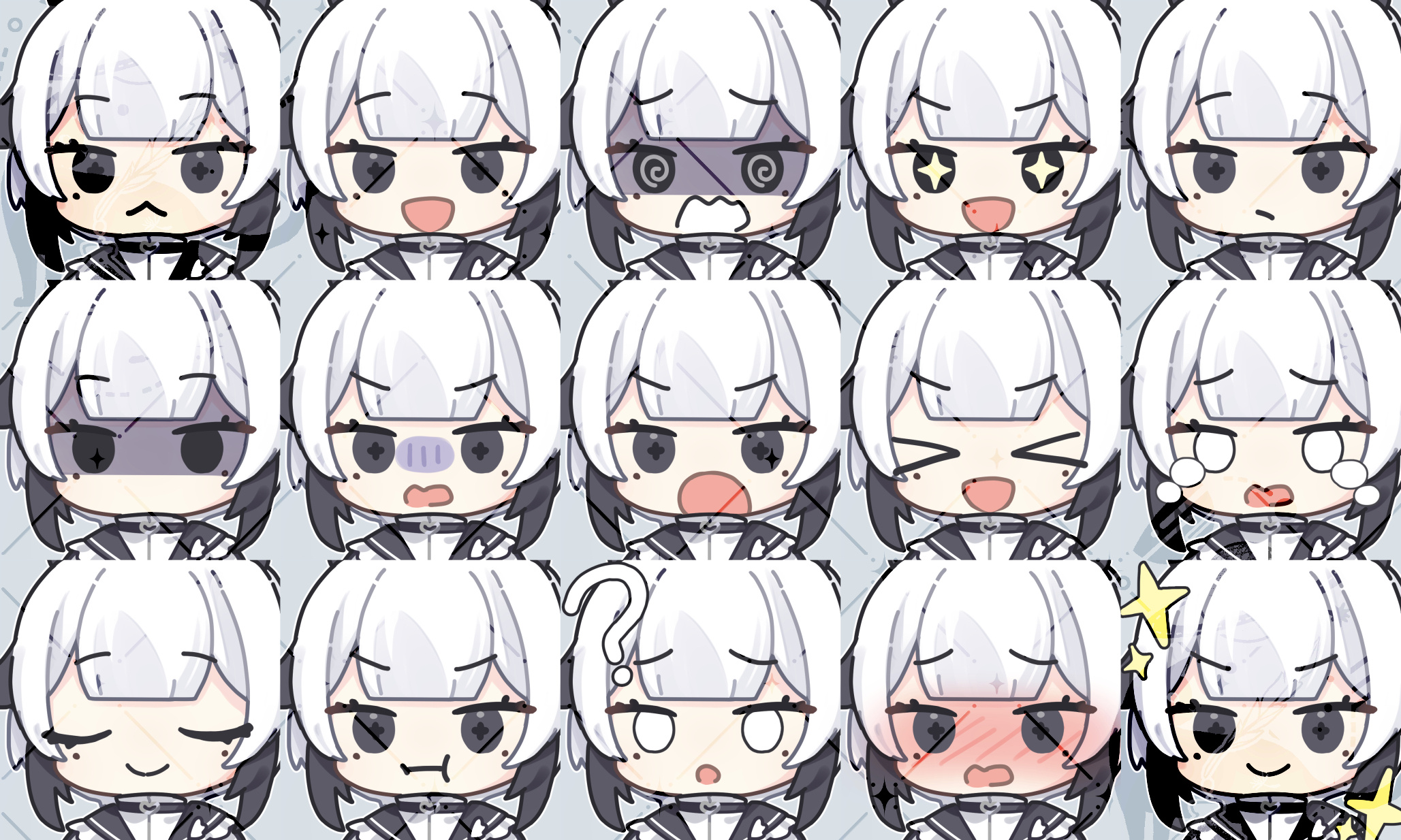 5. 檔案大小默認長寬1000px,交稿會提供各表情jpg、各部件分開圖層的csp檔,可自行排列組合表情。
