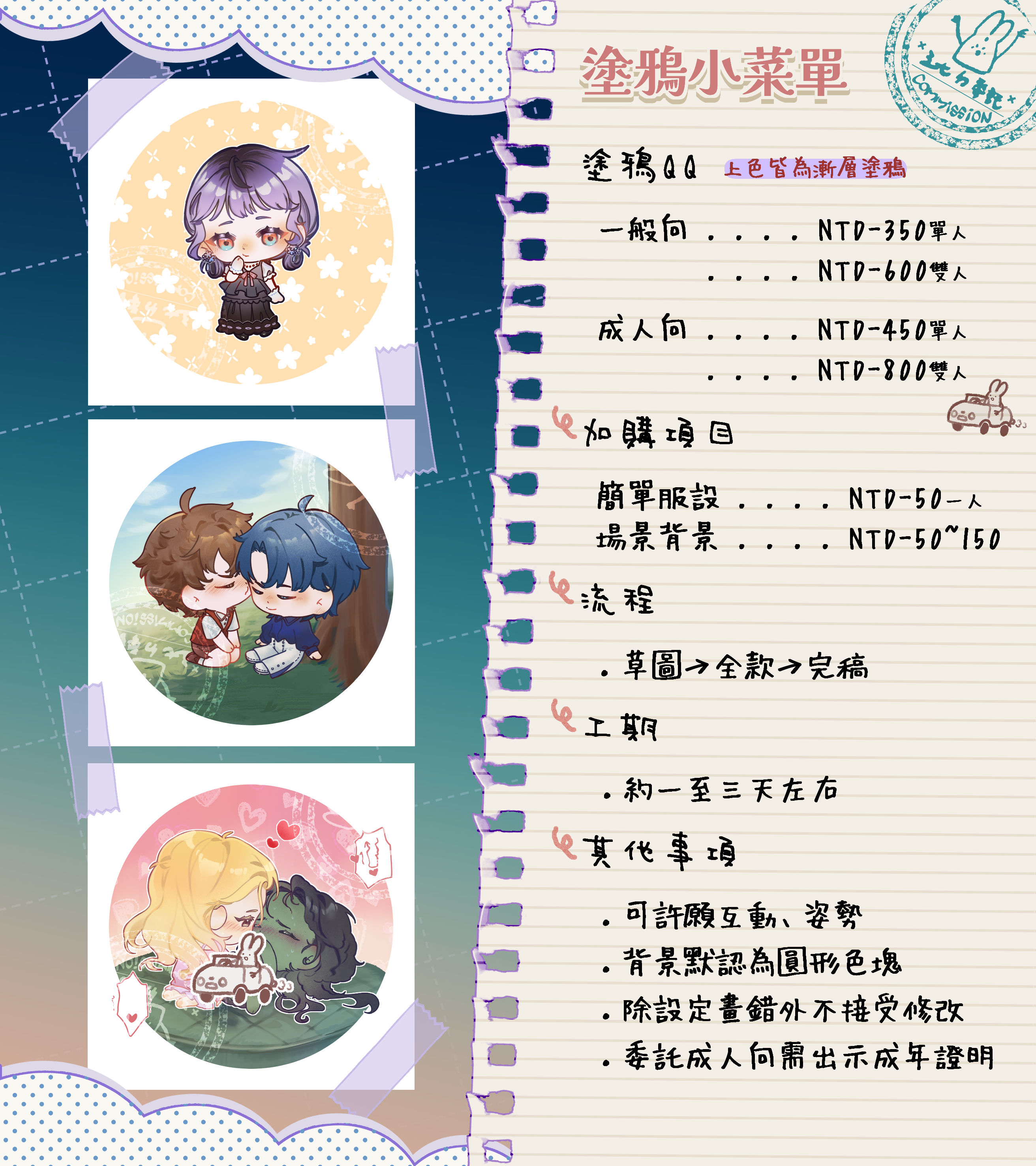 有很多種的Q版委託