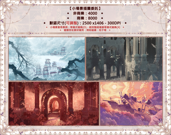 金額:開始繪製草稿後如要取消委託排單訂金將不會退還,如果已經完稿將不會接受取消委託(委託人需支付全部稿費)。
