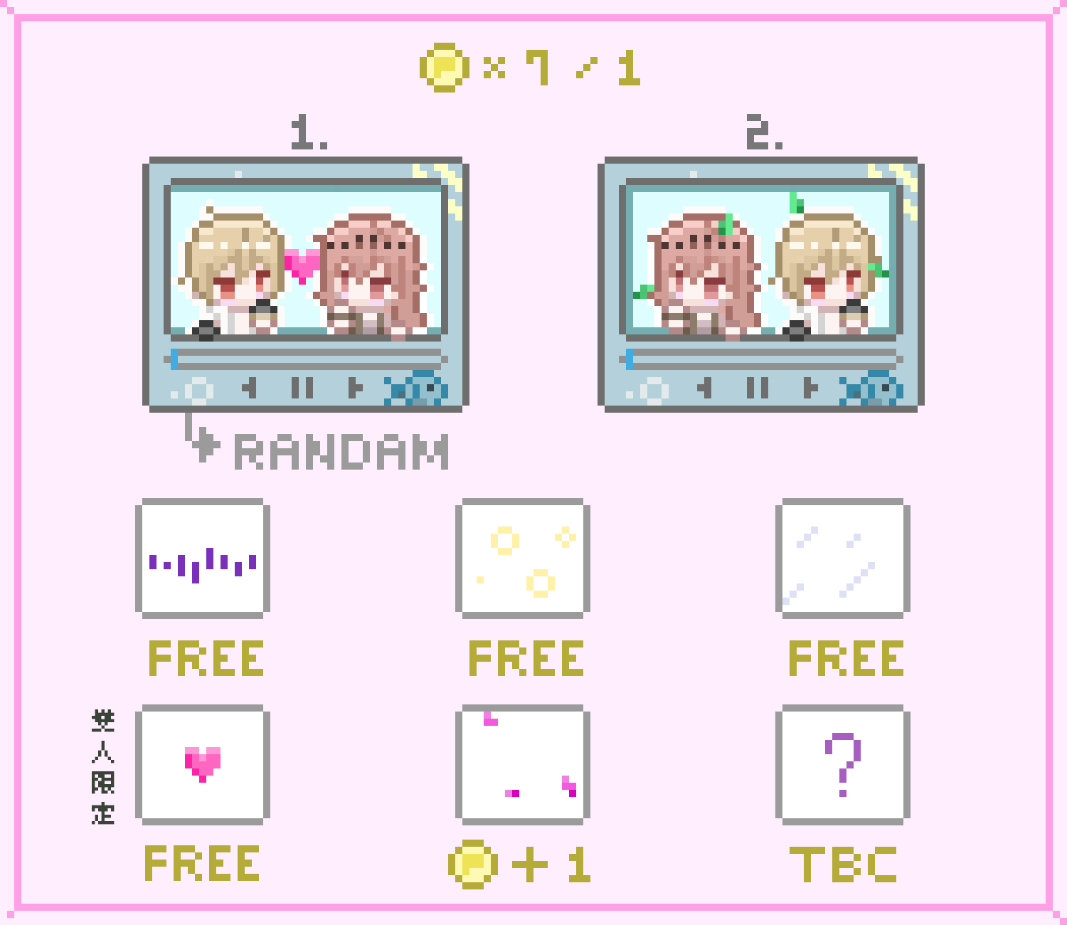 🌸 特效:音樂 / 蘇打泡泡 / 雨 / 愛心(雙人限定) / 花瓣(葉子)(需+1幣)