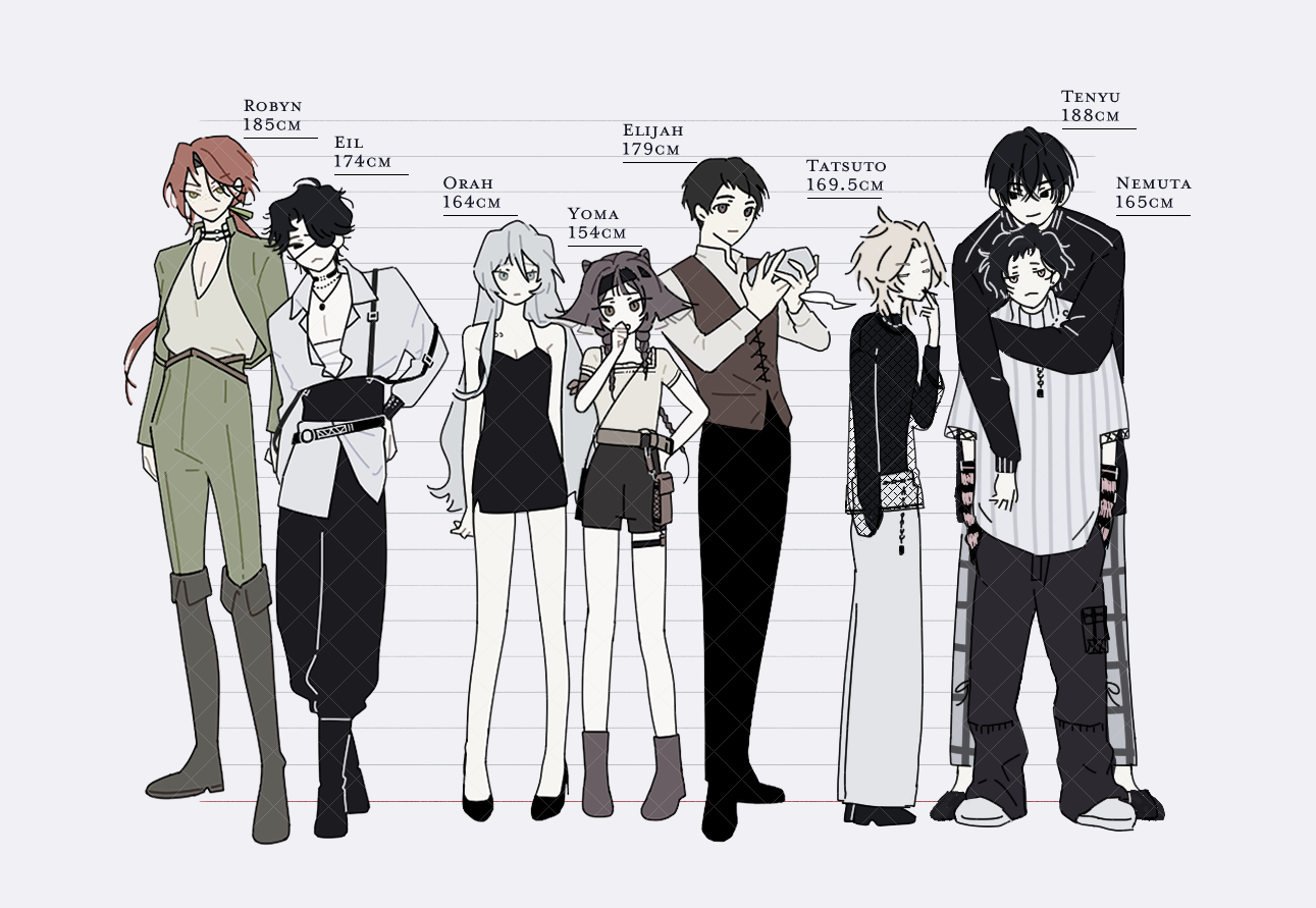 可協助製作一張角色身高總覽表(如範例圖1),如有需要請提供想列在表上的角色名(語言不限但不建議過長)