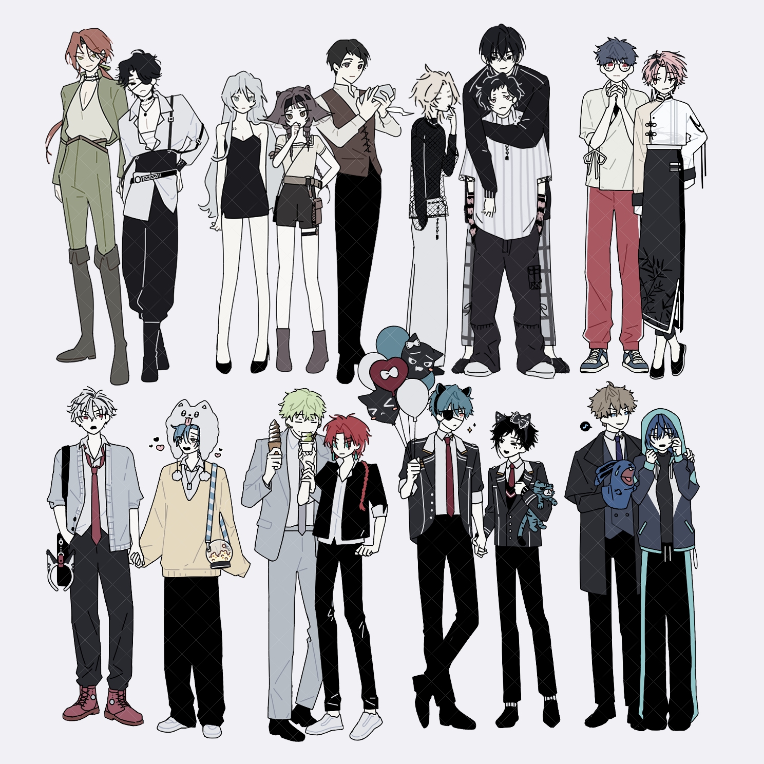 可許願表情、動作、互動,如有互動導致角色無法拆開則無法提供單人拆分檔案