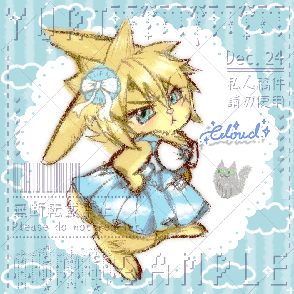 此品項以Q版形式繪製,可指定動物和服飾,會適當省略服裝細節,背景色和花邊樣式可指定,額滿後未來可能會調漲價格!