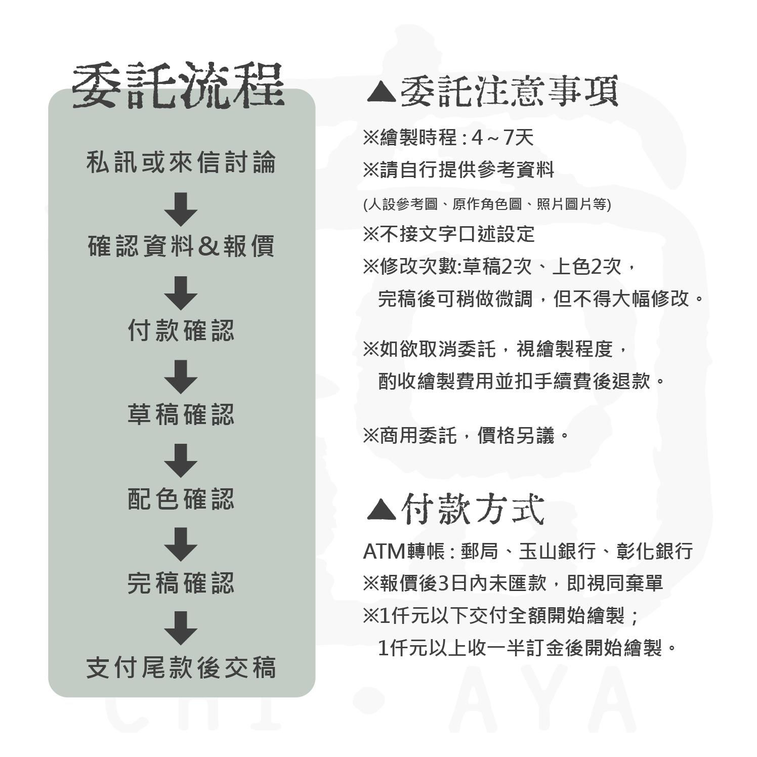 這裡是綺椏,如欲委託,請詳閱下列資訊~