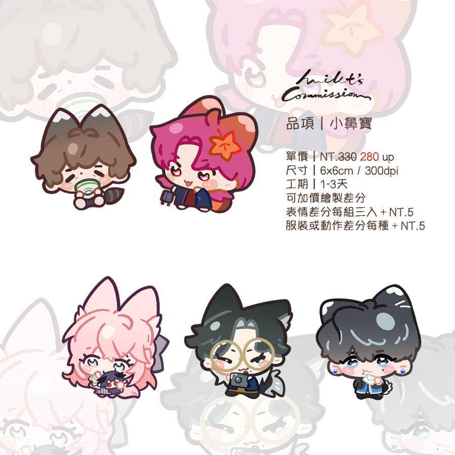 此品項在繪製時可能無法避免將許多設定細節簡化的情況,煩請介意的人多加考慮再來委託,非常感謝。