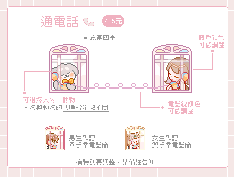 放大3x檔、獸耳、角色設定帽子,需 + 45 元。