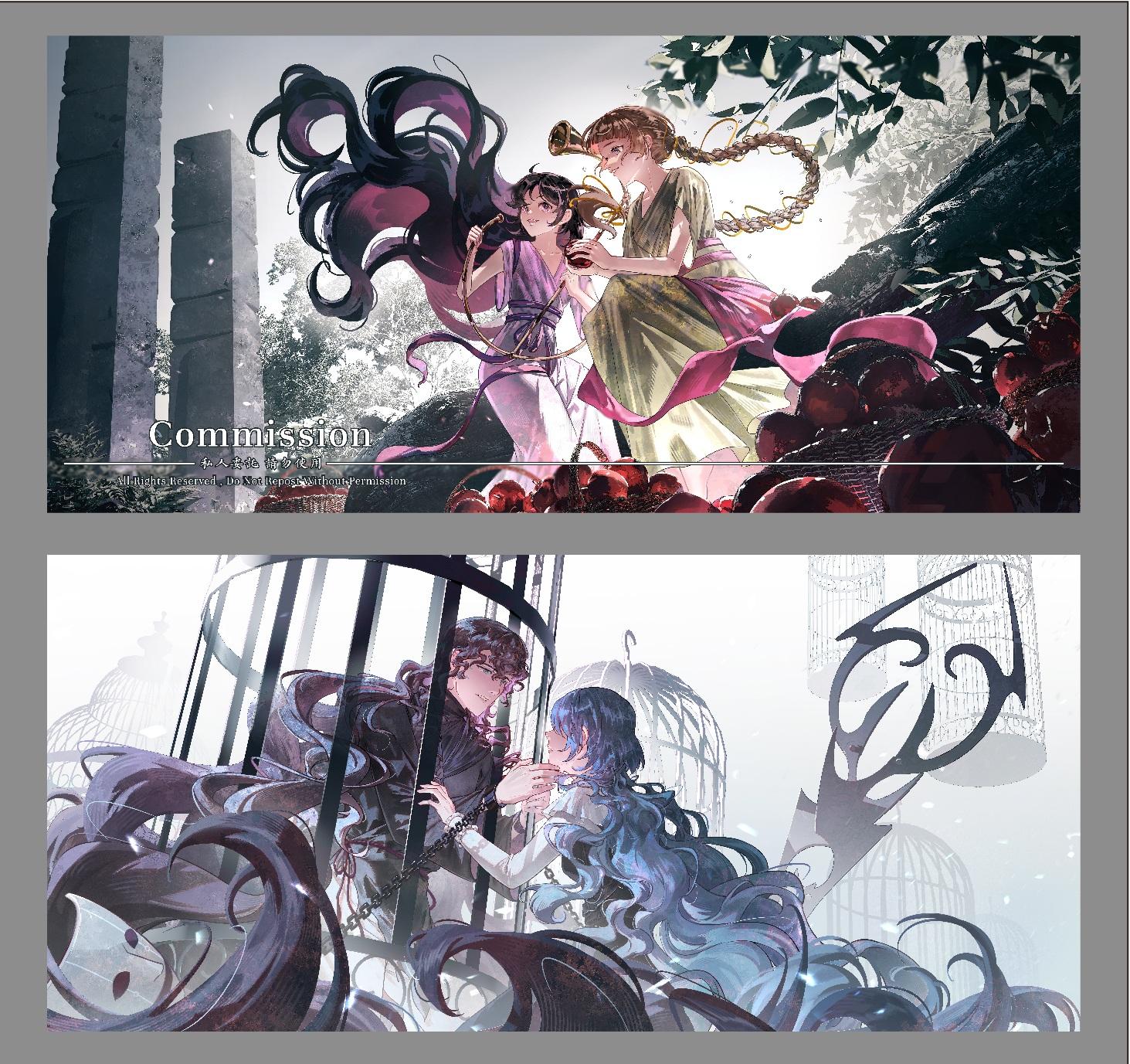 非商業委託所完成的圖片可供委託人個人網路使用、自印或無料贈送20份以內,委託人可自由裁切與打水印,其它二改需求請先與我溝通並取得我的同意。發布時須以合適方式標註繪師名:牧葵。