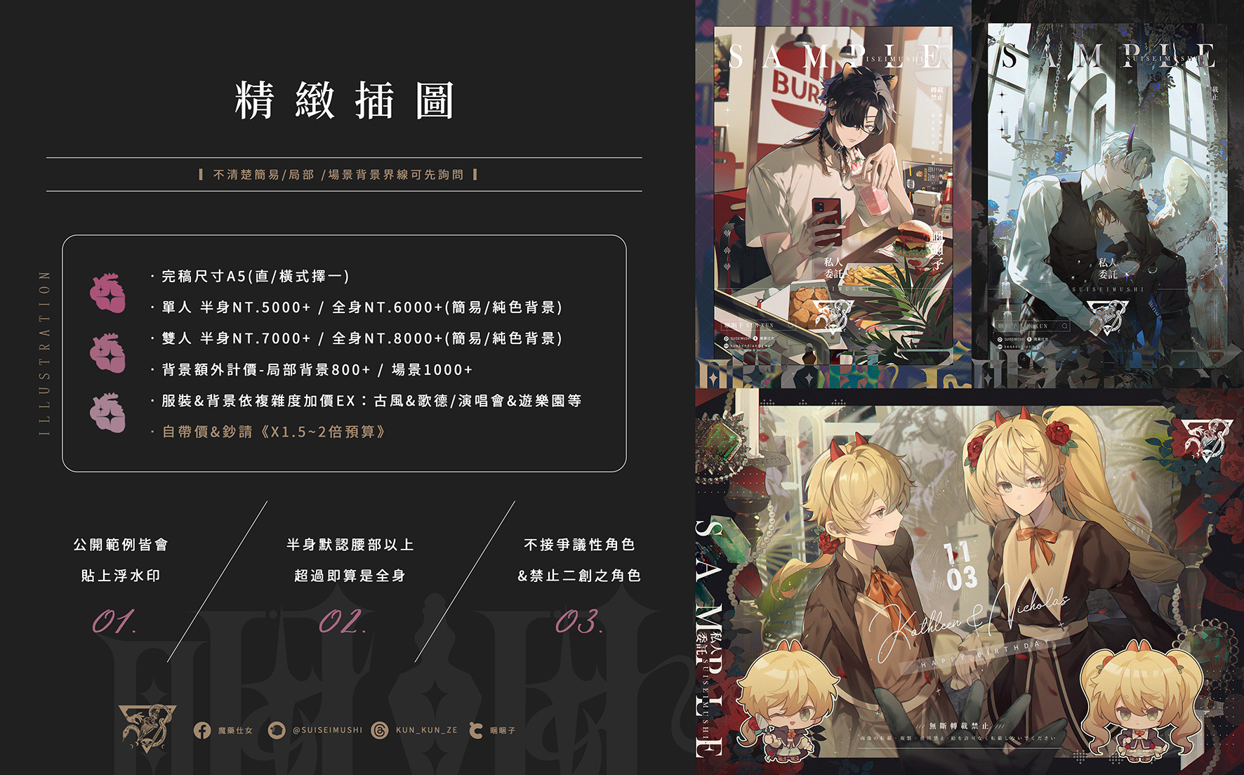• 委託非買斷,完成品會壓水印公開&當範例圖 (若不想公開請改商業委託)