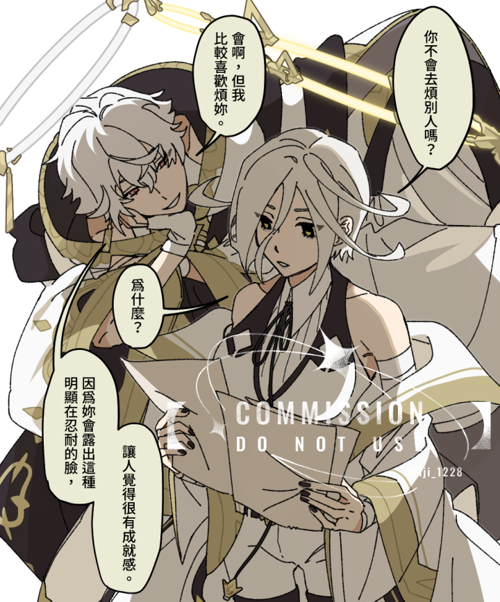 【注意事項】驚喜包性質,會由我根據提供的對白思考互動並直接完稿。繪製完成除設定畫錯否則無法修改,請確認已接受再委託。