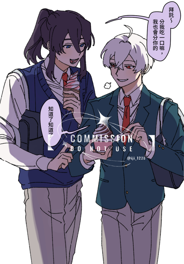 流程:委託方提供資料(含人設及1-2句對白,如果有特別指定是誰說的也請一併指定)→確認接受委託後這邊告知金額及匯款資訊→依收到款項順序繪製(不提供草稿,會直接完稿)