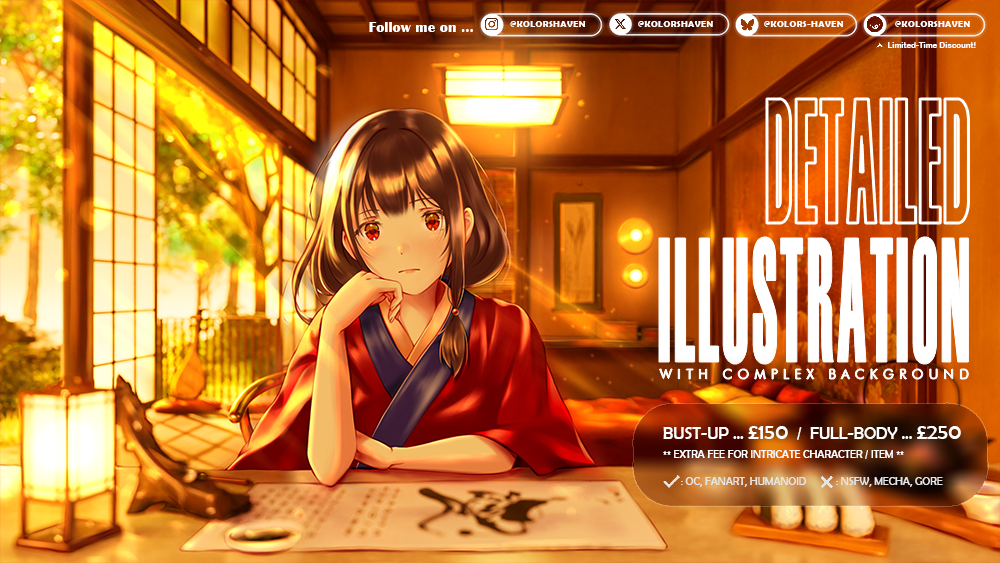 • 大腿以上或全身角色插畫需額外收費