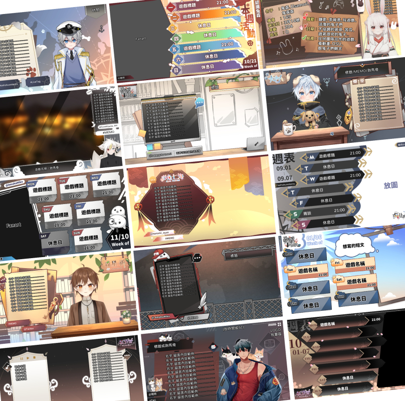 |追加其他版面:例如 歌回+1000 NTD、週表+1500 NTD、介紹頁一版+1000 NTD