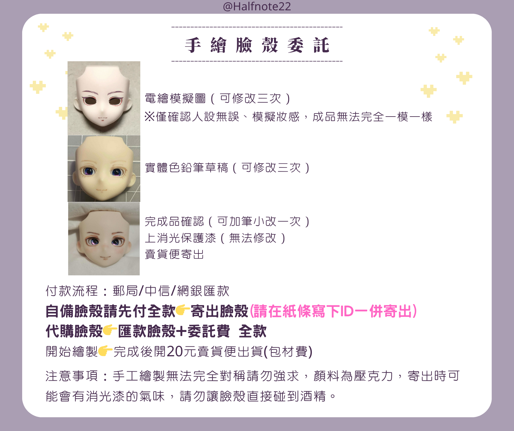 娃妝訂製中心 收到臉殼/排單後工期1~3天內,非常速!