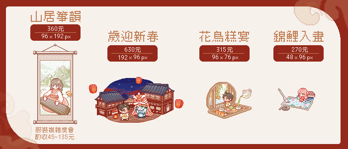 |山居爭韻表格 (此像素僅收裙裝,服裝複雜度酌收45~135元)