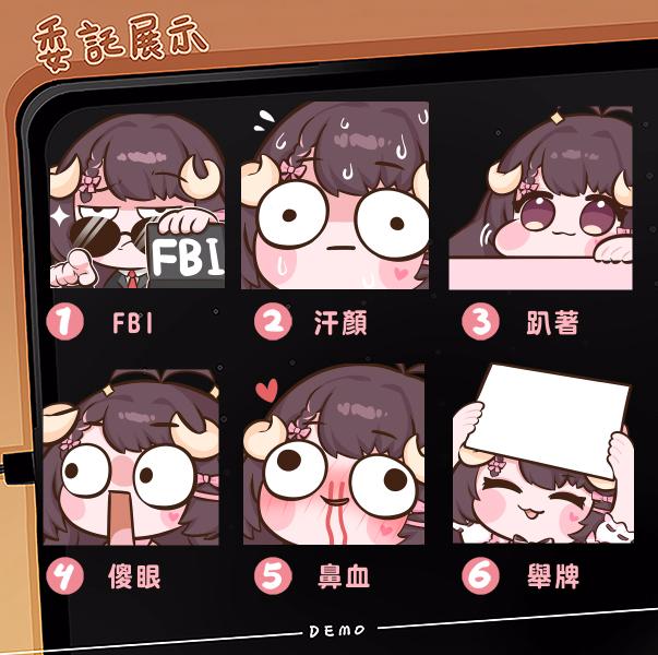 4.傻眼 5.鼻血 6.舉牌(請附註要客製的文字或圖案)