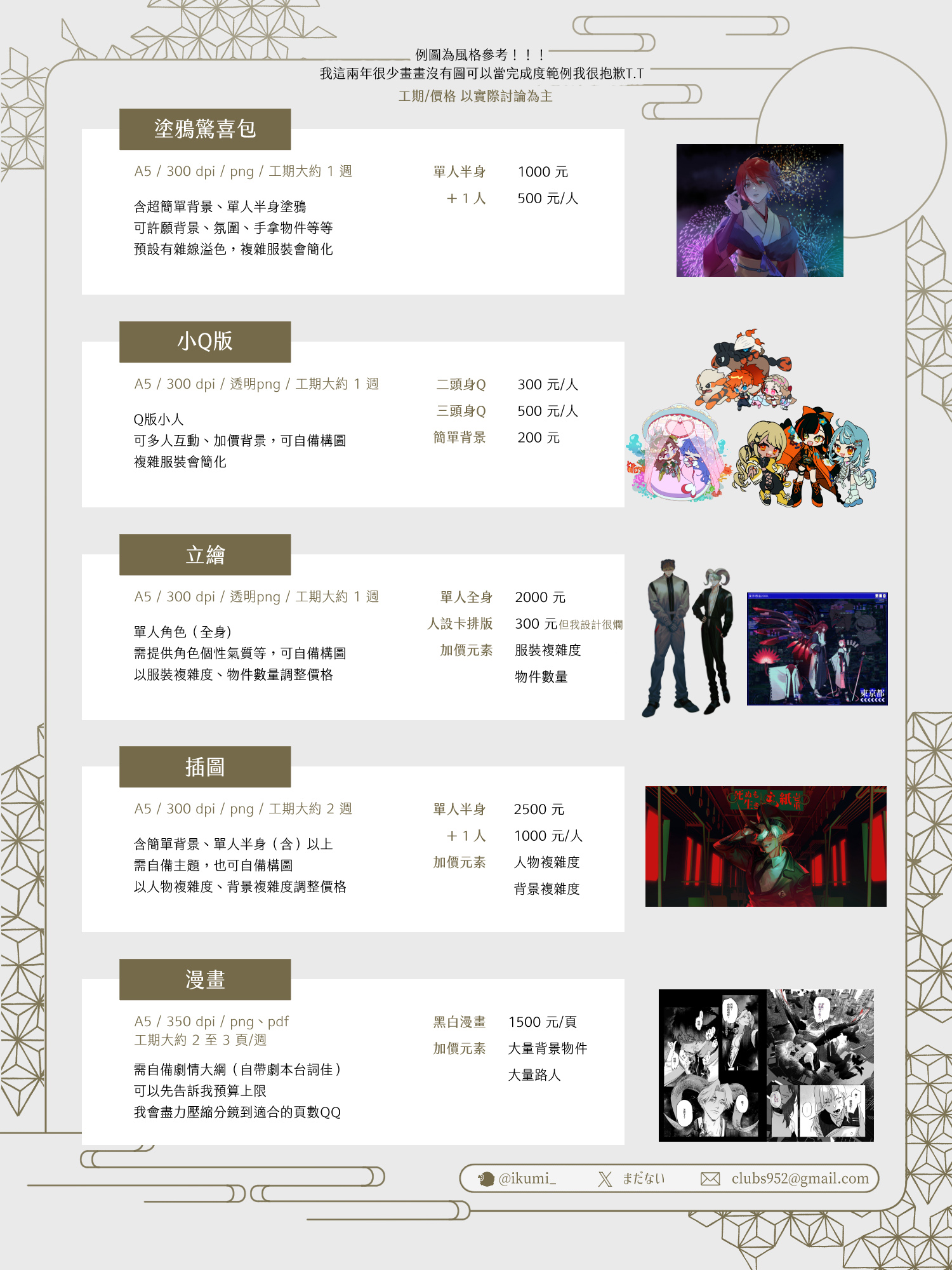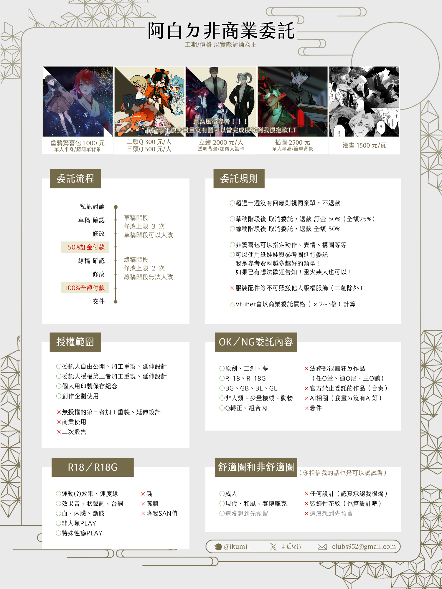 詳細可以參考🔗IKUMI的非商用委託(Google試算表)