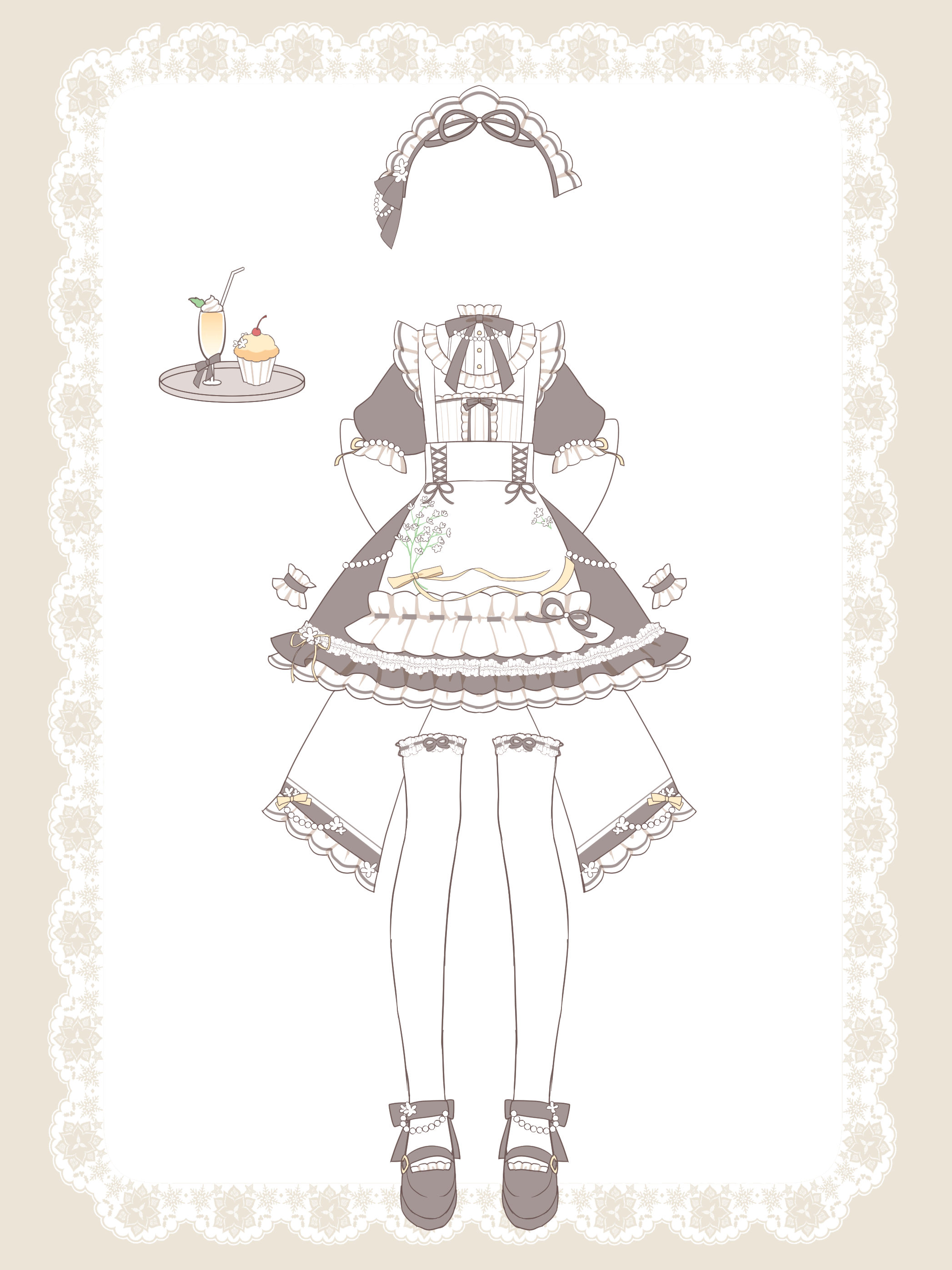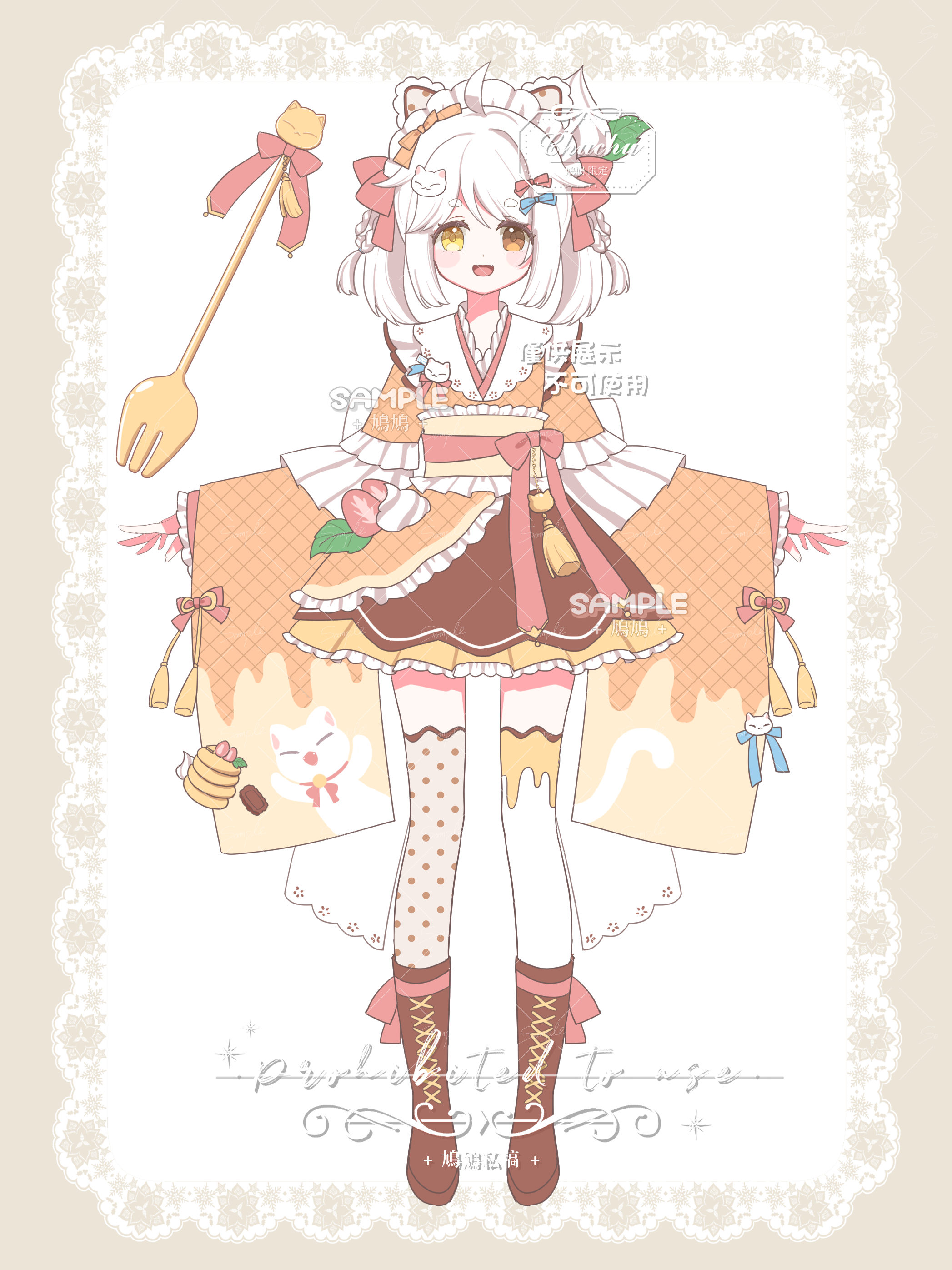 元素舉例:格子、條紋、圓點、玫瑰、紫籐花、櫻花、翅膀、愛心、草莓、布丁、貓咪(動物植物甜點圖形等等都可以)
