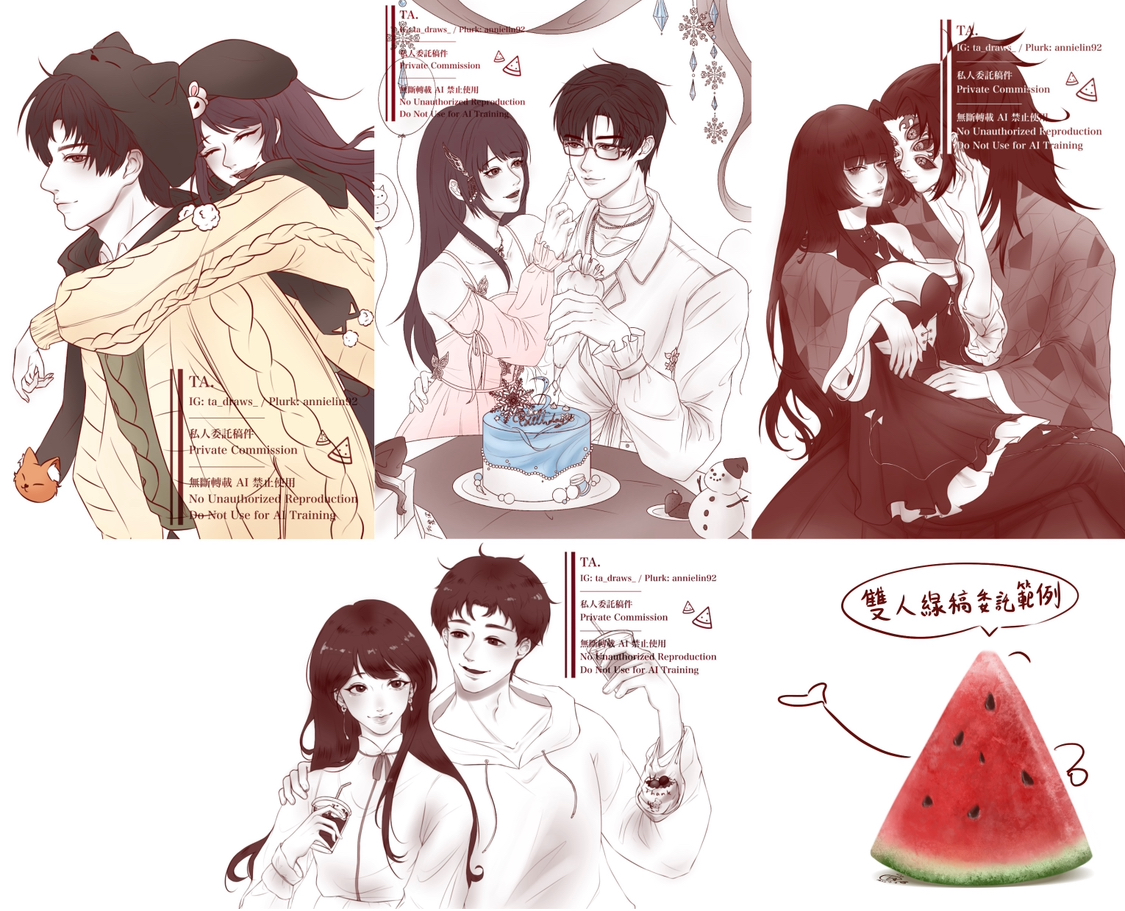 🔺最後委託的圖完成後有可能會拿去發在社團或自己的 IG 繪圖帳號,並且會在繪圖帳號放上縮時,如介意再提前告知