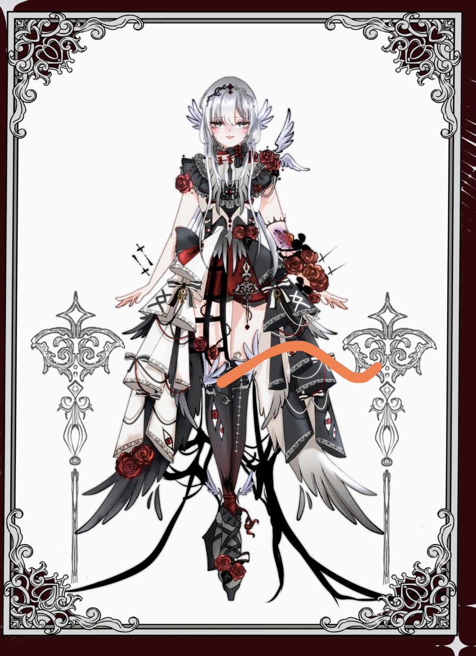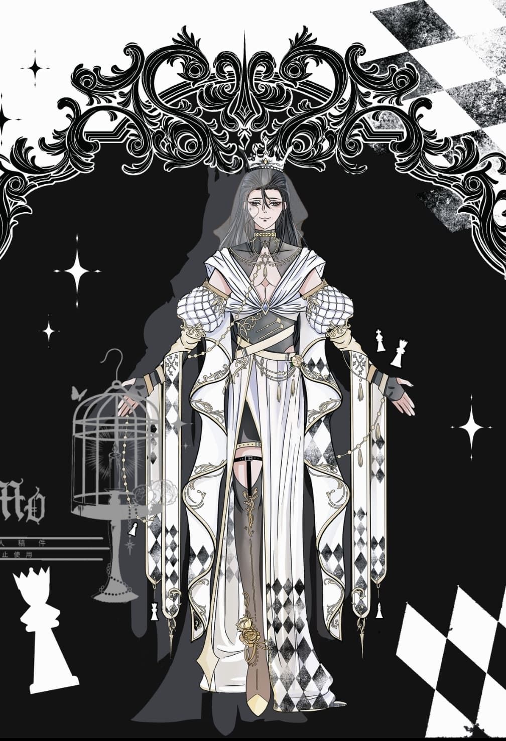 (可給一個服裝風格、元素或印象物/世界觀)例:中式洛麗塔+蓮花/黑暗西幻+蝙蝠/軍裝+玫瑰……等。