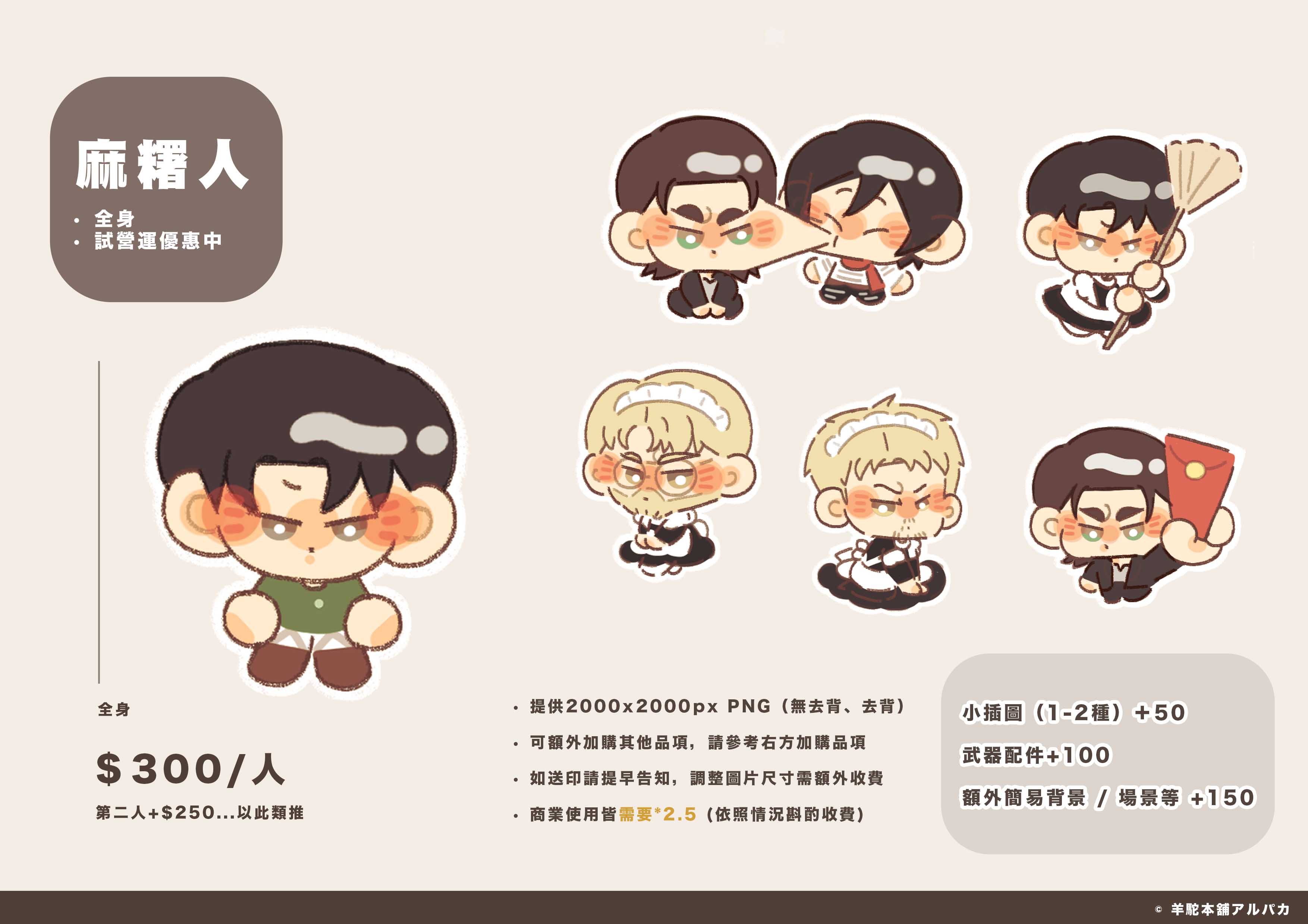 商業使用需來信詢問,價格需要*2.5(依情況斟酌收費)