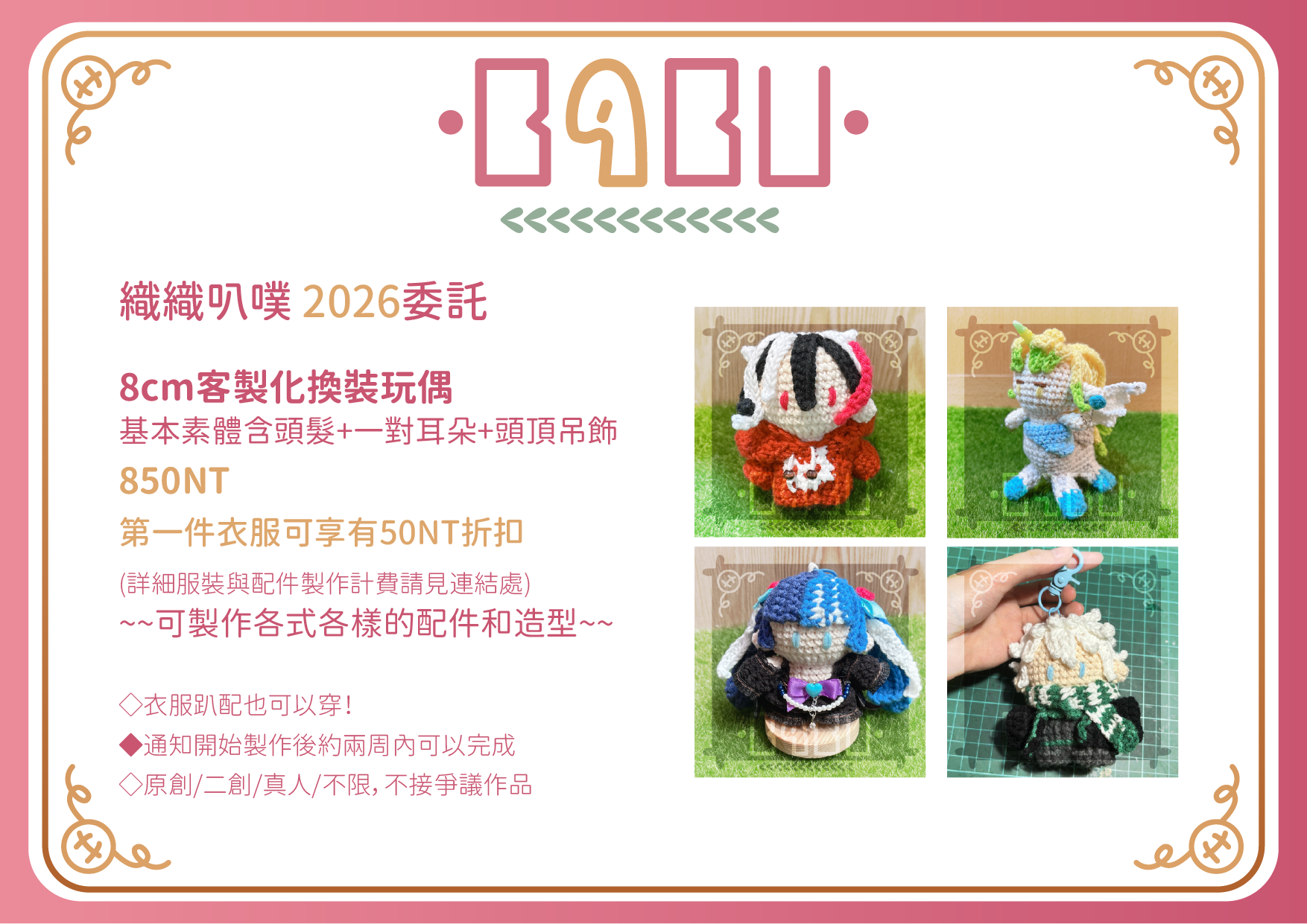 【織織叭噗的 8公分手作娃娃★二創/原創/夢向都可以製作!】