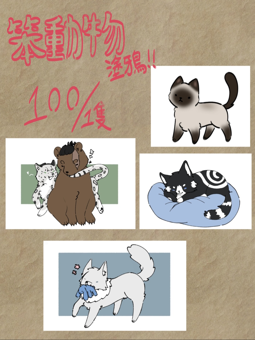 -動物塗鴉可以提供簡單人擬動物,須提供設定、想要的物種、想保留的元素如配件瀏海等(或者也可以交給我自由發揮!)