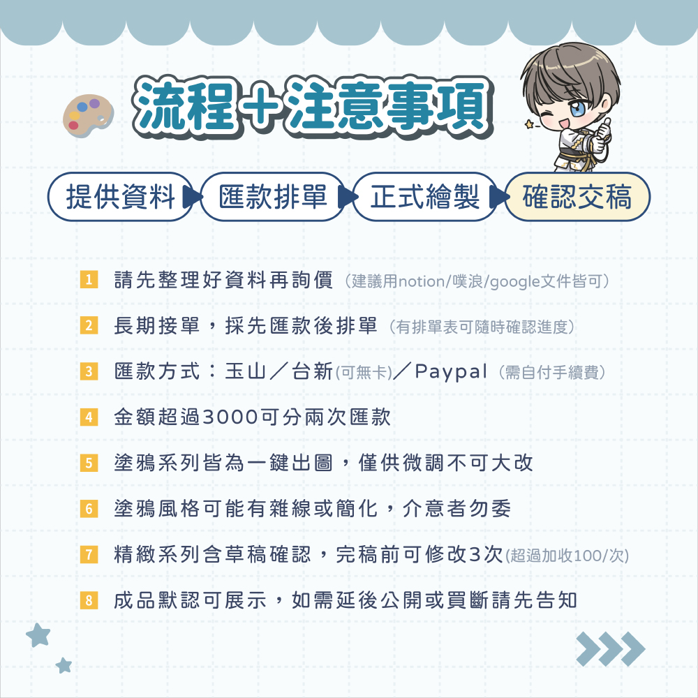 ※收到款項後才會開始繪製,委託前請先確認排單表