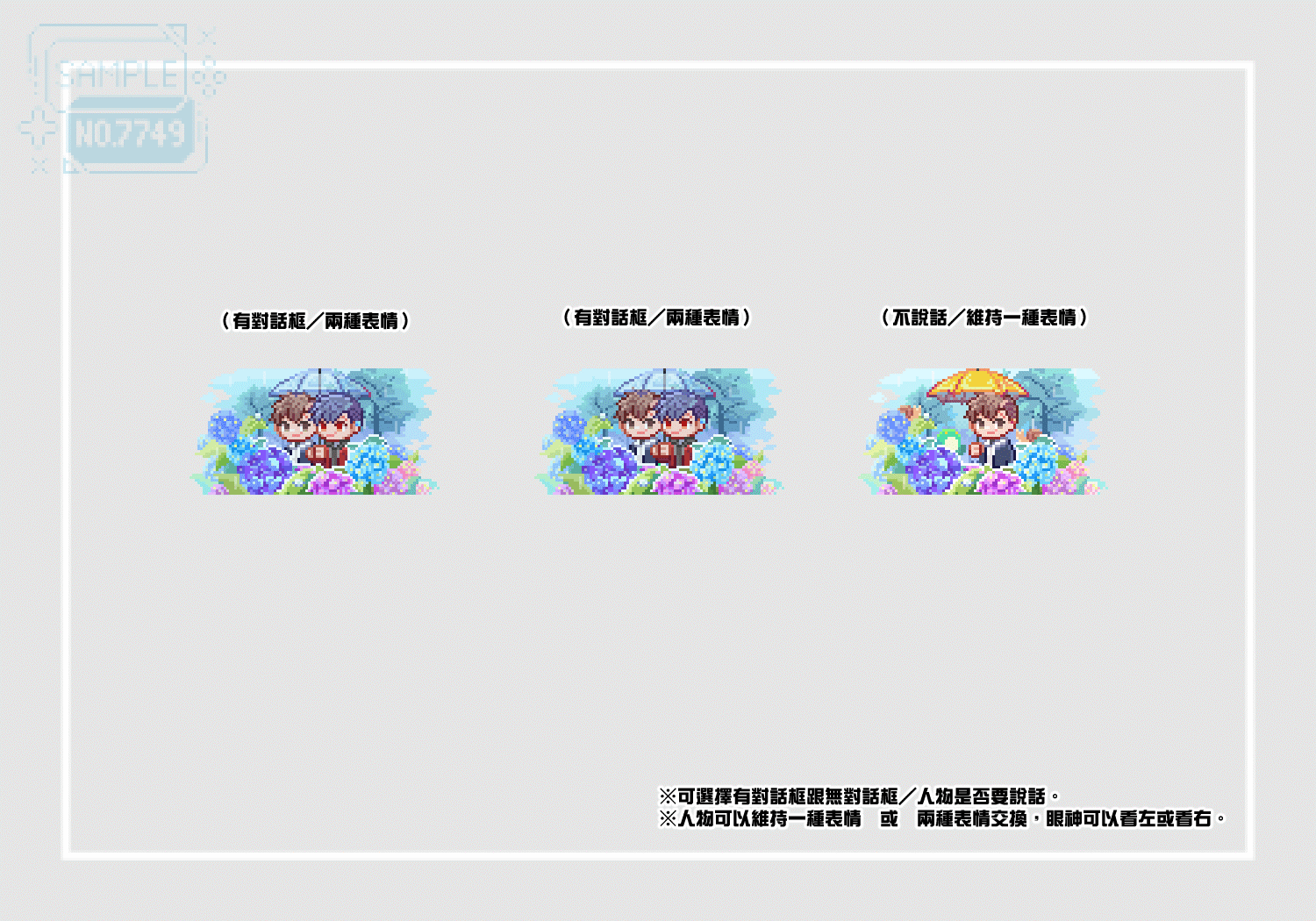 .可選擇有對話框跟無對話框/人物是否要說話。