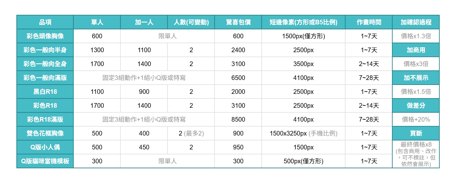 7~28天作畫時間 以排單表為準