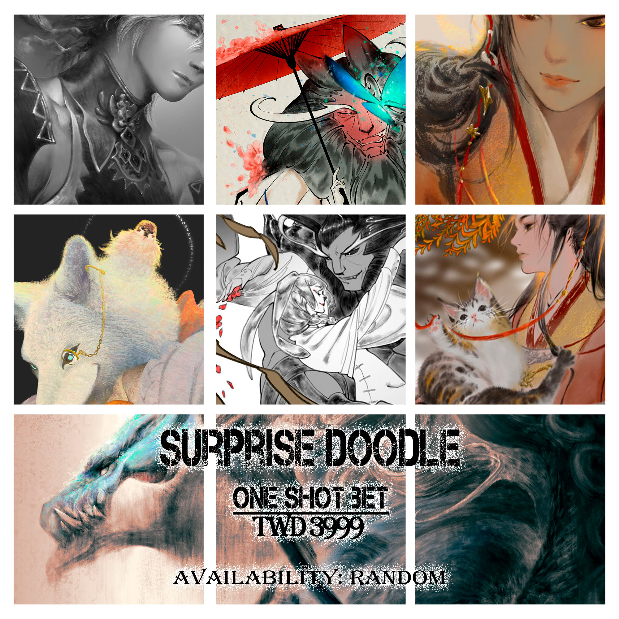 • 驚喜包等於不修改,只根據你的短資料快速提供成品,也可能不會接受花費修改,因為這個轉蛋是塗鴉。