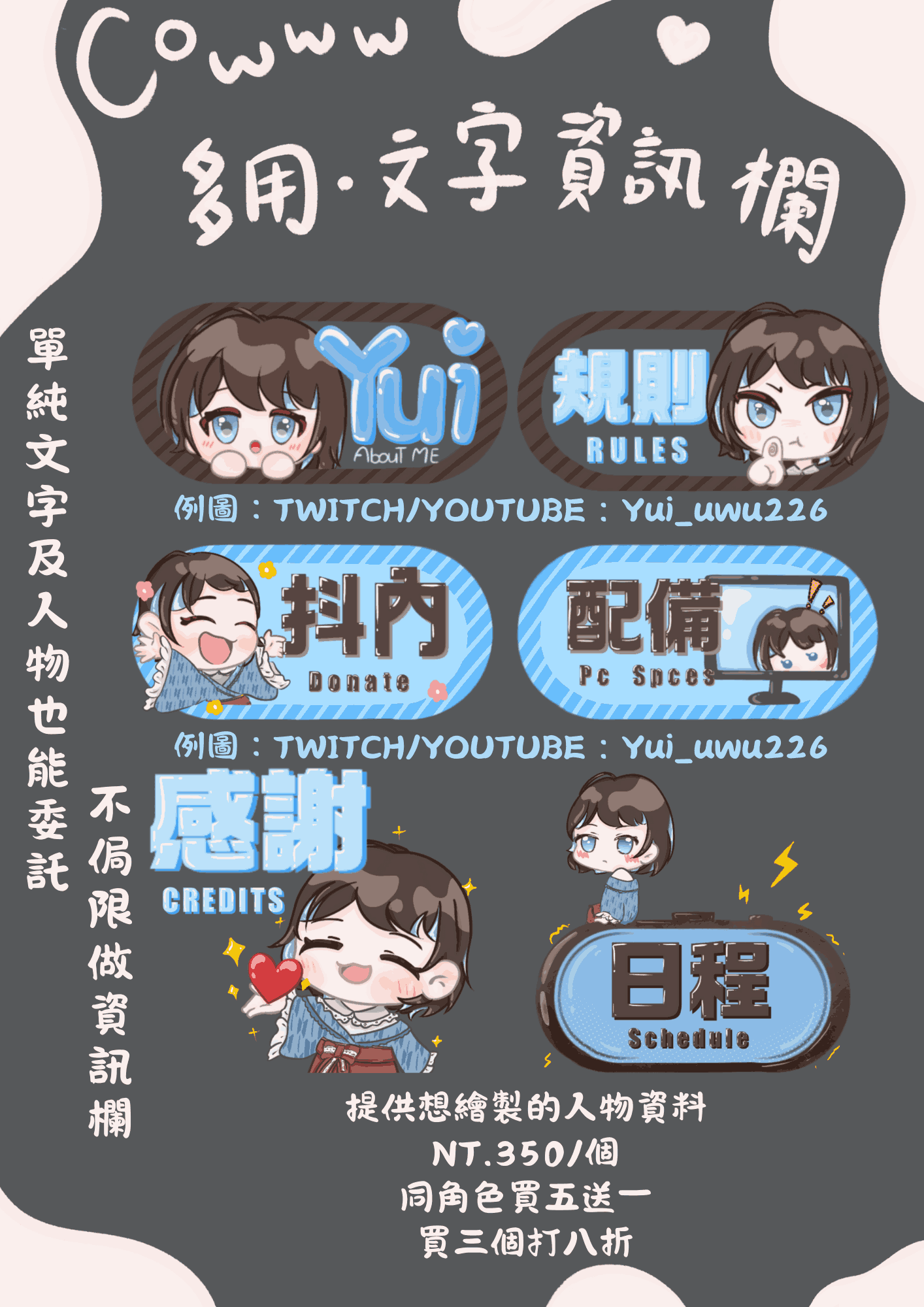 ☆ 繪製過程可能會在實況上公開,若有需要不公開請額外告知。☆