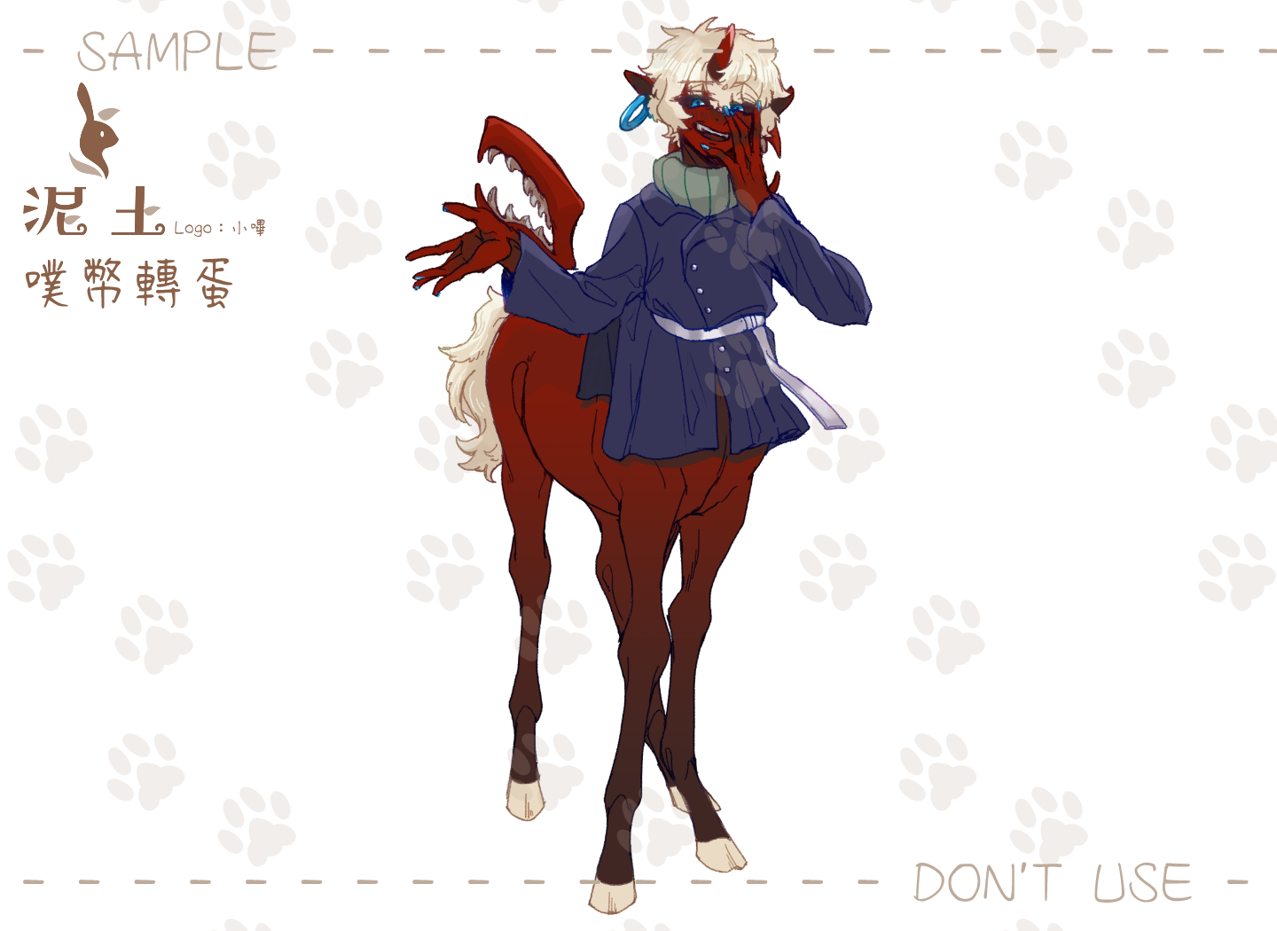 1. 此委託成品為「既有角色的人馬化、正比塗鴉、全彩填色不上陰影」的300dpi/png無背景的塗鴉一張。